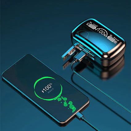 The LED digital display charging case not only keeps your earbuds powered but also doubles as a mini power bank to charge your phone on the go. Designed for comfort, performance, and portability, these earbuds deliver premium sound anywhere, anytime.